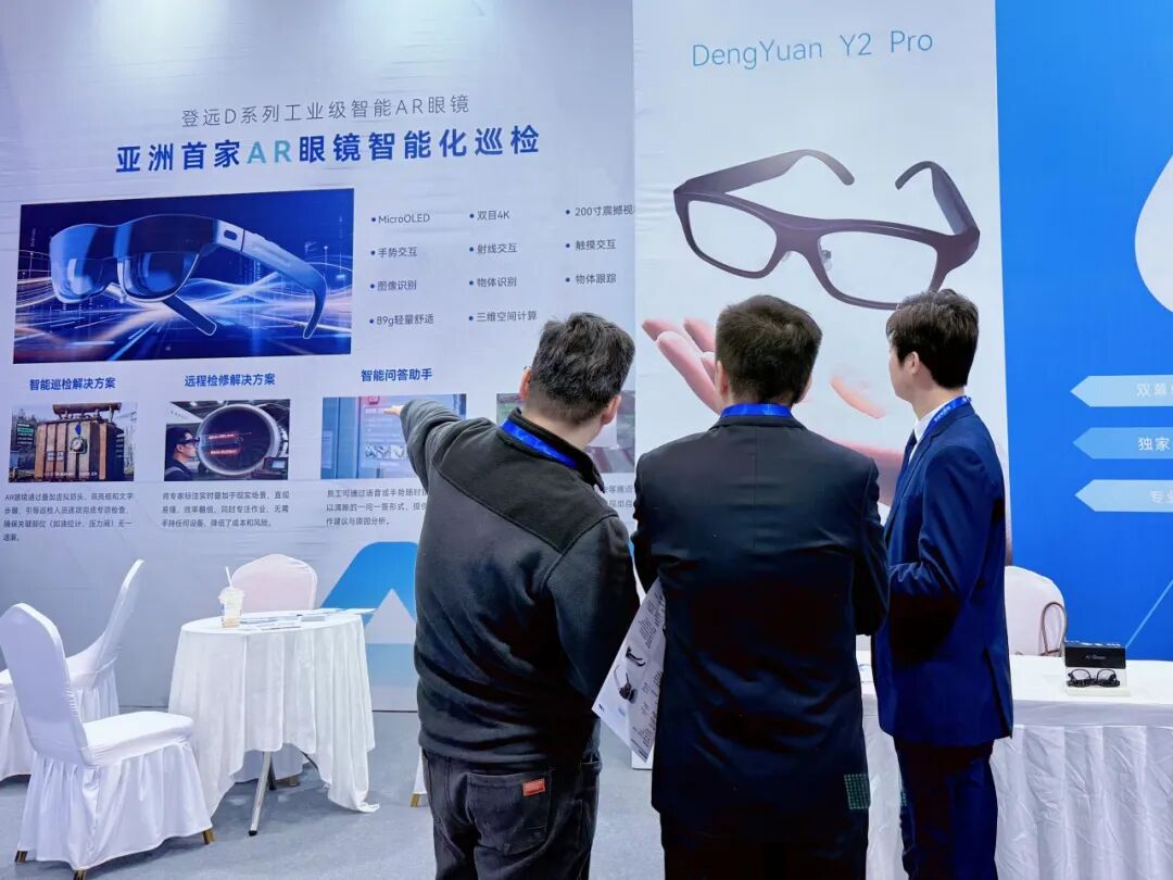 D系列工业级AR眼镜深度融合AI算法与增强现实技术,可实现远程协作、智能巡检、标准化作业指导等功能,已在电力、能源、制造等行业实现规模化落地。展会期间,多位来自装备制造、能源化工等领域的企业代表现场体验产品后,对其在提升作业效率、保障安全生产方面的价值给予高度评价。Y系列消费级智能眼镜则以轻量化设计、实时翻译、智能提词、会议纪要等实用功能,成为展台的另一大亮点。随着人工智能与消费电子深度融合,Y系列产品的应用场景不断拓展,从跨国商务到移动办公,从教育培训到生活辅助,正逐步走进更广泛的用户群体。