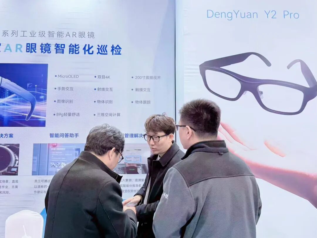 在展会现场,登远科技重点展示了DengYuan D系列工业级AR智能眼镜与DengYuan Y系列消费级智能眼镜两大核心产品,吸引了众多专业观众与潜在客户的驻足交流。